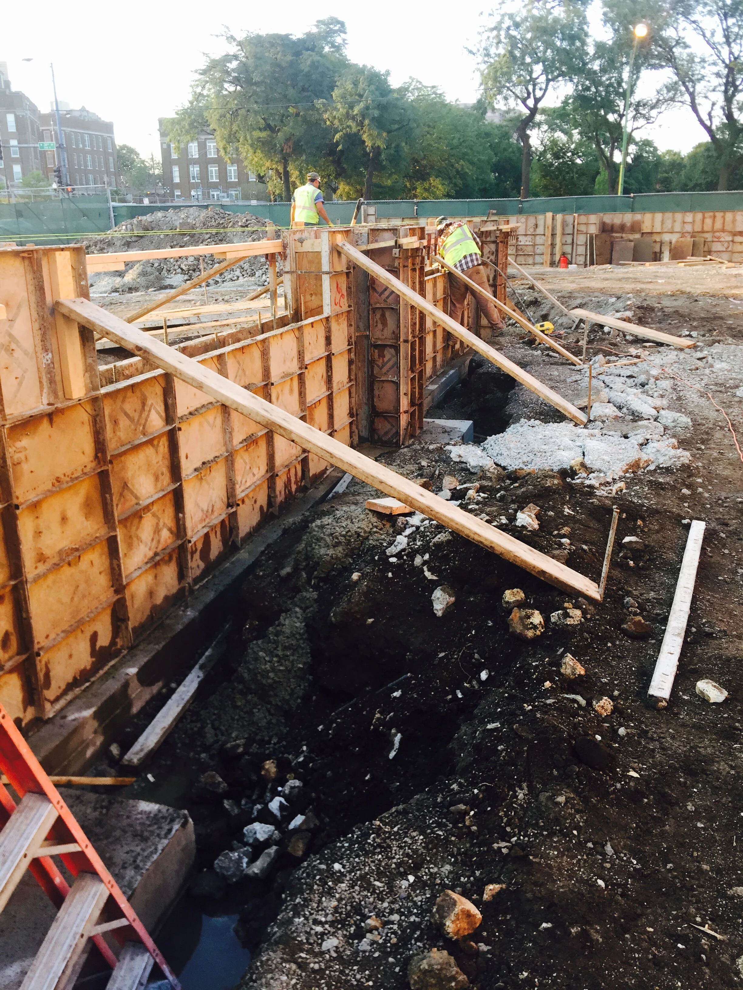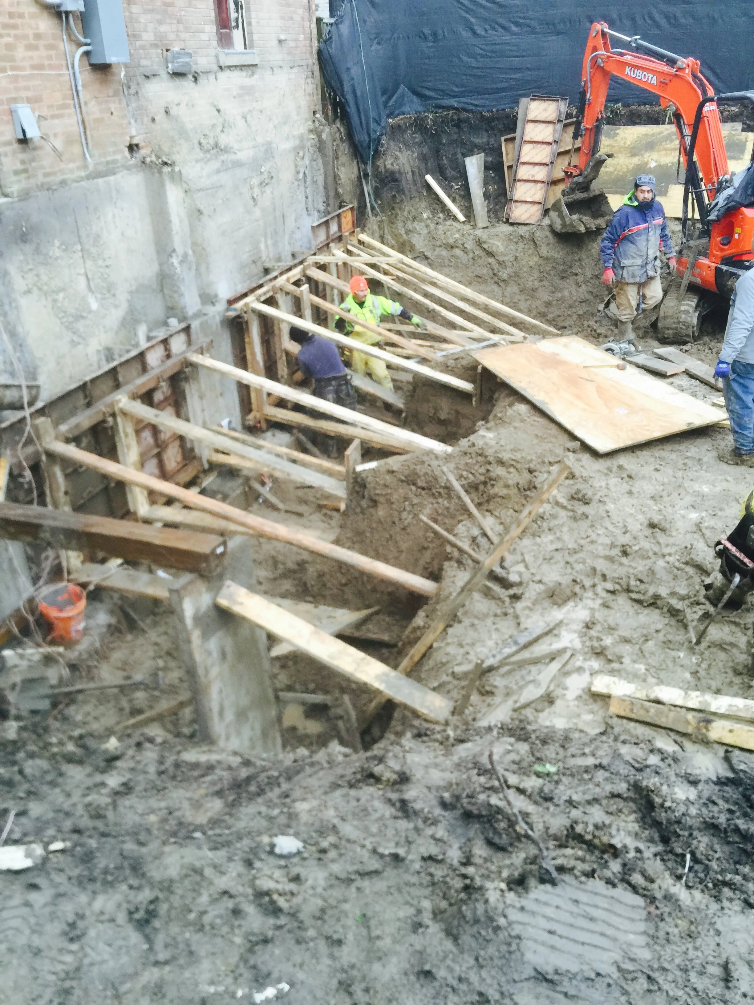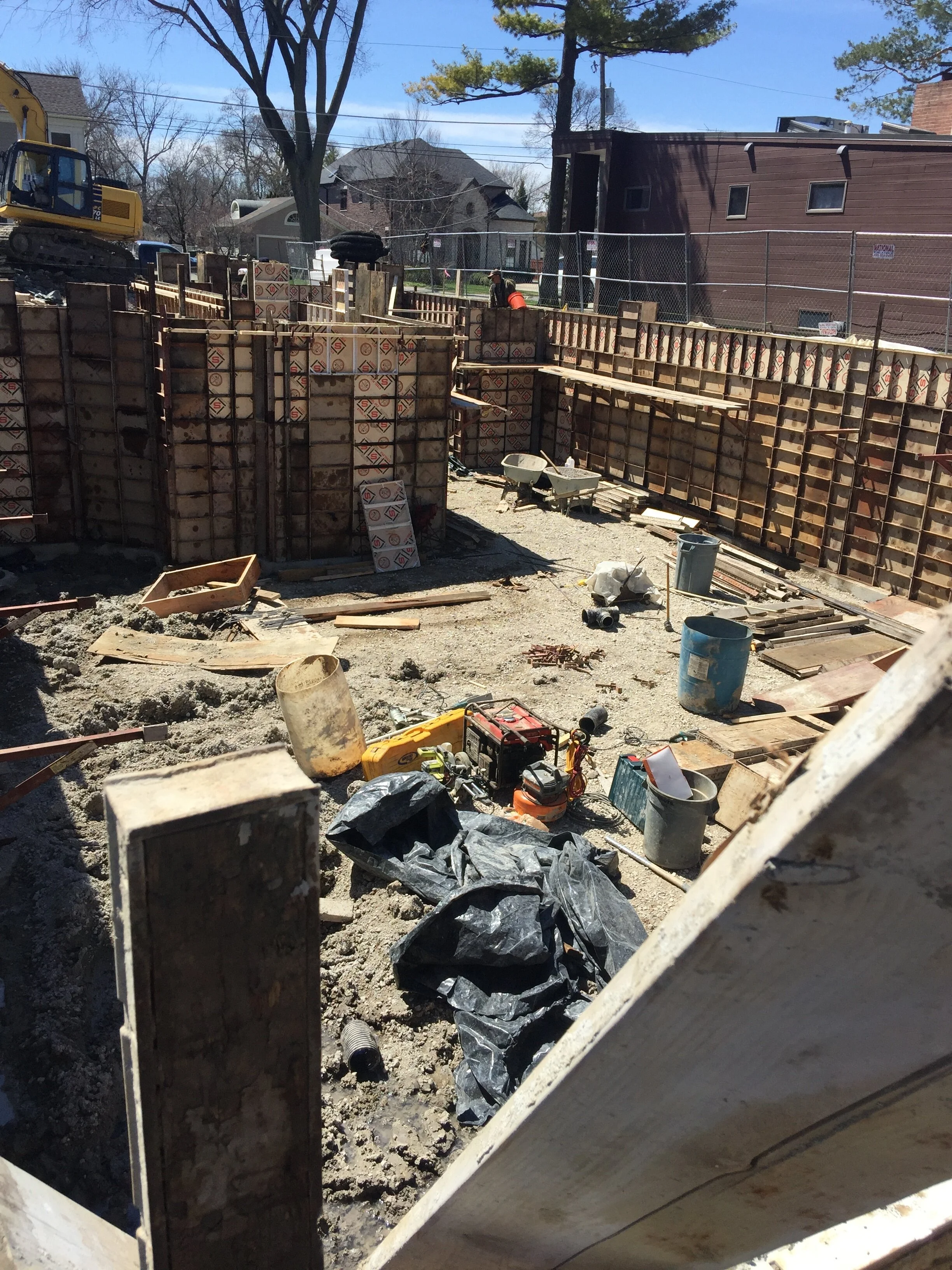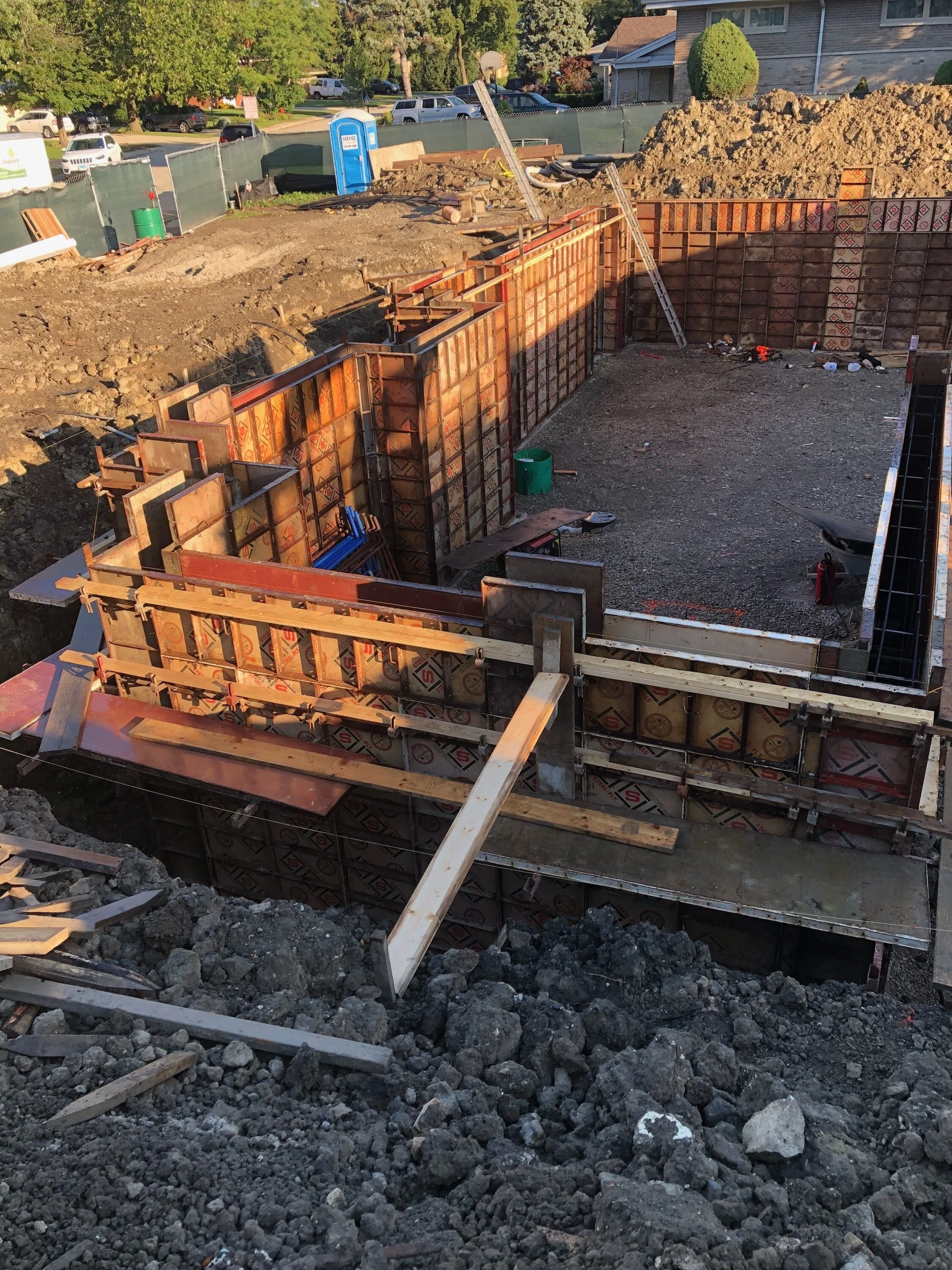 Day Three: Cut any door or window openings in the existing foundation and remove the slabs. Strip the forms, install the waterproofing and insulation. Install drain tile and sump pit. Backfill and rough grade.